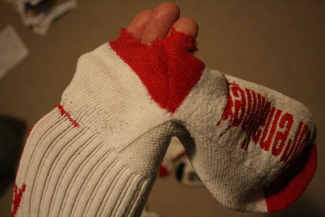 I’m not sure the pictures show it clearly, but each sock is worn right through at the heel or toe and they are done.