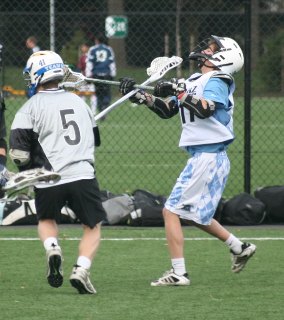 I love the second picture…taken on the next day. He’s wearing his Team BC helmet (you can see the 41 on it) and he’s just provided the other team’s offensive player a reminder of what’s going to happen if he wants to get close to the goal. One of his lacrosse teammates told me he hated going up against Chris in practice because he knew he was going to feel it, but he loved going against Chris in practice because he knew he was going to get better.